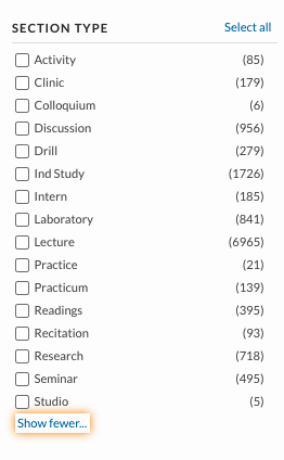 The Section Type filter includes various types of sections that are offered for a particular course.