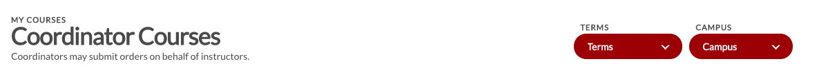 If a user has access to order content for multiple Terms or Campuses, these filters will appear at the top of the page to narrow the results which are displayed for any subsequent searches.