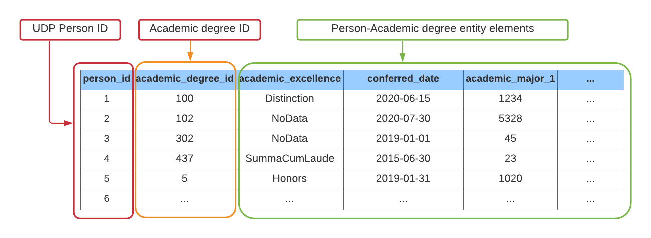 <figure><img src="https://3709019308-files.gitbook.io/~/files/v0/b/gitbook-x-prod.appspot.com/o/spaces%2FKYwtHNGgdPXS3PWAlZUr%2Fuploads%2Fgit-blob-9455c317aa48e7f0979c0e58f8bf98c51b75340c%2F20447988.png?alt=media" alt=""><figcaption><p><em>A brief description of the Person-Academic degree table definition, highlighting that composite Entities are defined by two or more UDP IDs of distinct entities.</em></p></figcaption></figure>